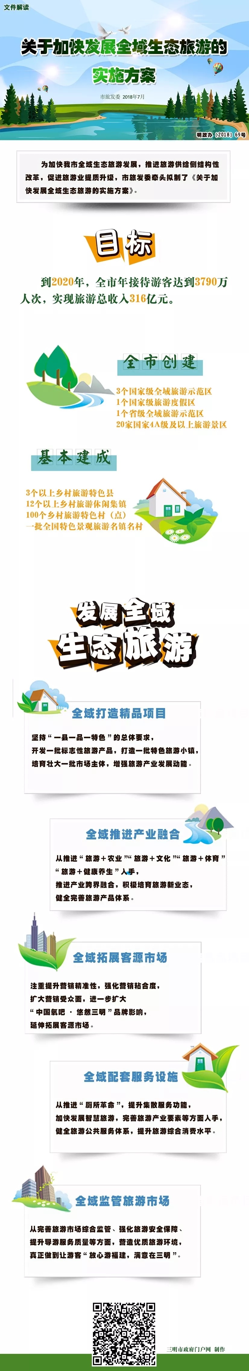 近日,市政府办公室下发了《转发市旅发委关于加快发展全域生态旅游实施方案的通知》(明政办〔2018〕69号)(以下简称《实施方案》),现将有关政策解读如下: