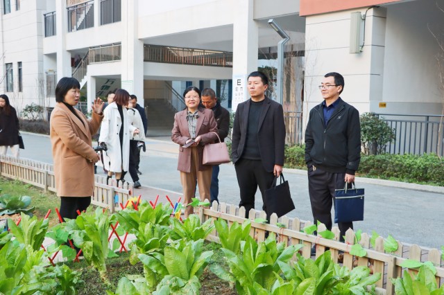 考察组在叶校长的带领下,实地参观了生活体验馆、明沪楼、明远楼阳光农场等活动区域,详细了解学校特色课程的开展情况。并认真听取校长叶文香对沪明小学的办学理念、校园文化、课后服务开展的思路和特色介绍。