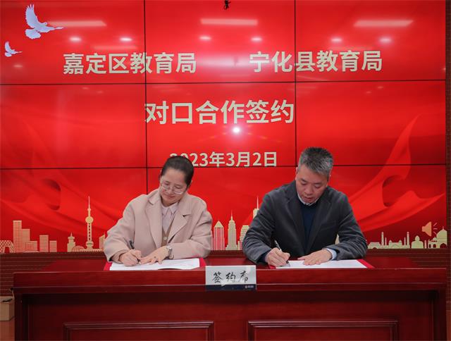 3月2日下午,宁化县教育局与上海市嘉定区教育局在嘉定区教育局会议室举行对口合作签约仪式。嘉定区教育局局长管文洁、宁化县教育局党组书记、局长兰鹏出席签约仪式。