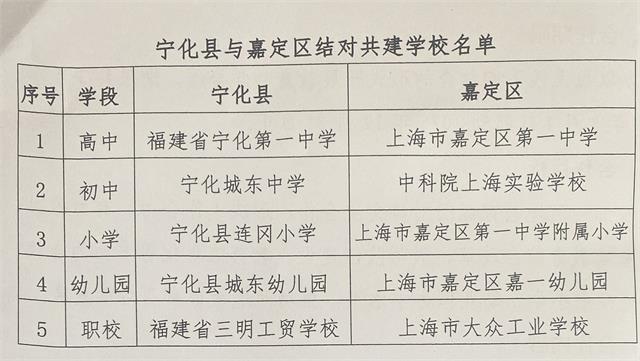 宁化县教育局与上海市嘉定区教育局签定教育对口合作协议