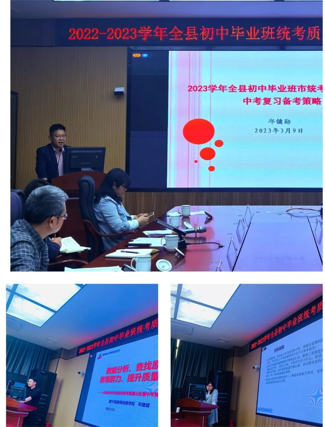3月9日,建宁县召开2022-2023学年全县初中毕业班市统考质量分析暨中考复习备考会。建宁县教育局党组书记、局长徐铨出席会议并讲话,建宁县教育局党组成员、副局长邱镛勋主持会议。
