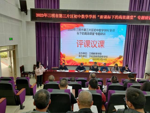 近日,三明市第三片区初中数学、英语、信息科技学科专题研训活动在宁化县举行。活动由宁化县教师进修学校承办,滨江实验中学、第三实验学校协办。大田、明溪、清流、宁化四县教师进修学校领导、学科教研员及相关学科教师共计150余人参加活动。