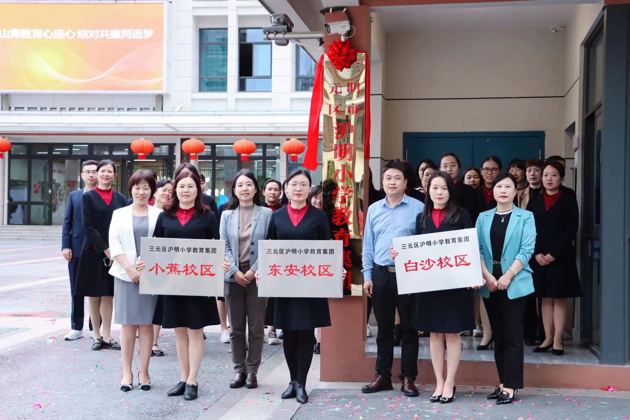 仪式上,三元区政府党组成员、副区长人选魏娜,三元区教育局局长谢映华共同为三元区沪明小学教育集团揭牌,并与沪明小学教育集团总校长叶文香共同为东安小学、白沙小学、小蕉小学三个分校进行授牌。