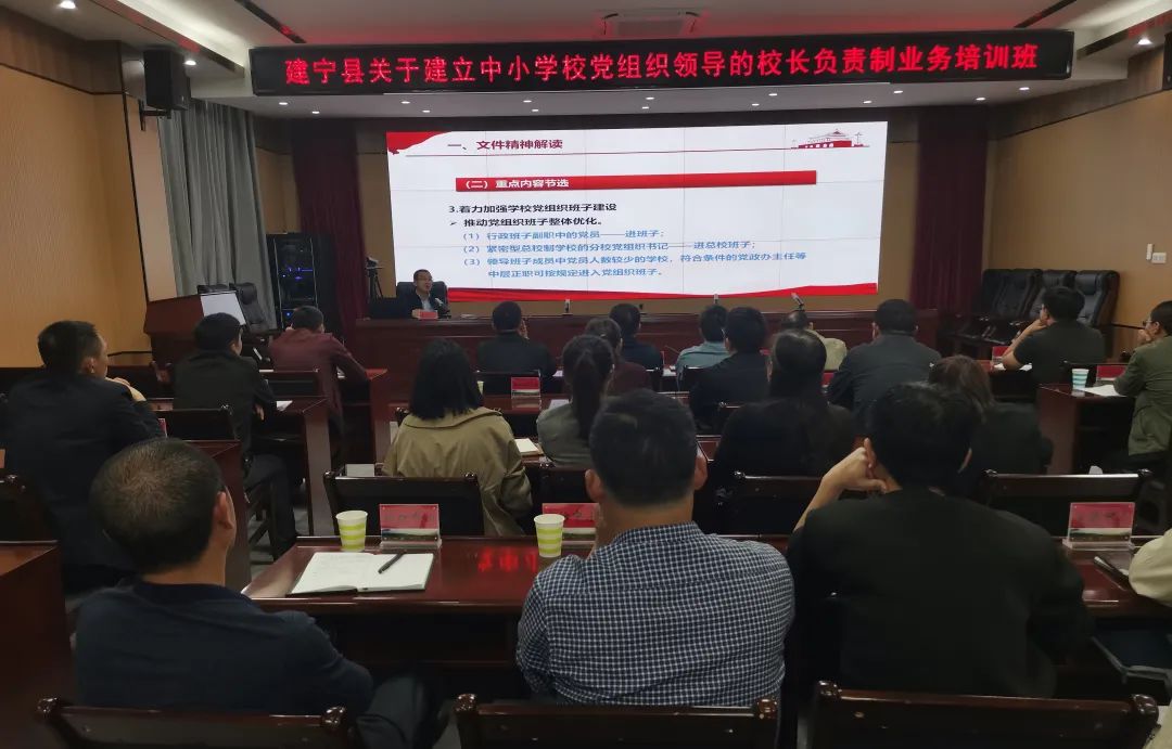 建宁县举行关于建立中小学校党组织领导的校长负责制业务培训
