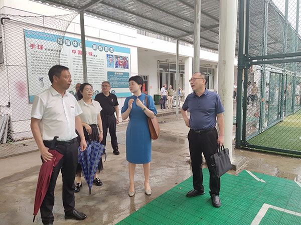 座谈后,涂林瑢局长一行实地走访了学校新建体艺教学楼及手球场馆,并对学校发展寄予厚望。