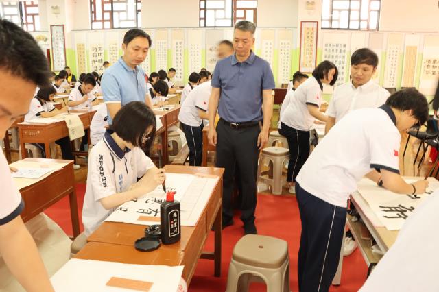 在宁化第六中学,专家组以听一节《伊秉绶隶书教学》书法课、学校汇报,看现场书写、成果展示活动等形式,对照考核标准,评估学校在实施书法教育教学工作中的做法和成效成果。专家组充分肯定了三所学校整体的书法教育环境建设和书法文化熏陶等,在反馈环节中,给予了建设性指导意见。