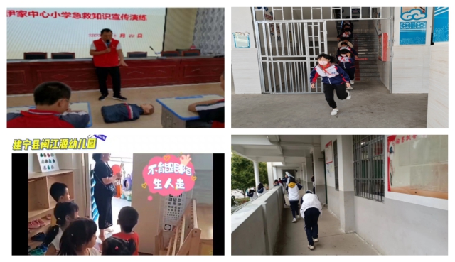 各学校结合校园实际,分别开展消防安全、防溺水、防震、防拐骗等应急演练,切实提高教职员工应急处置水平,增强学生应急逃生能力。