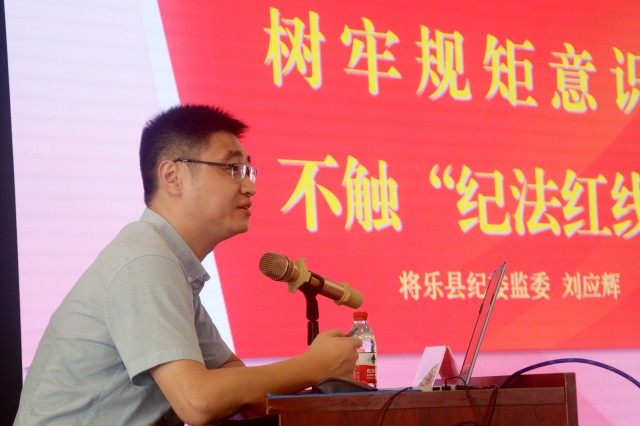 刘应辉在讲座中以“八条纪法红线”为主题,从教师师德师风解读、违反师德师风的现象及根源和相关法律法规解读入手,深刻阐述了师德师风建设的重要意义。刘应辉还通过分析典型案例,以案释德,以案说法,并再三强调党员干部及学校教师要严明纪律,内化于心,外化于行,注意岗位的廉政风险点,勿踩红线。