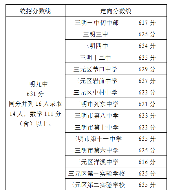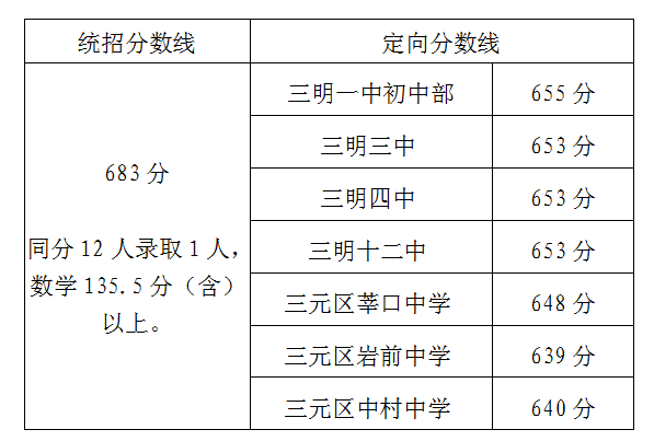 三明市中招办按照《三明市2023年高中阶段学校招生录取办法》(明教中〔2023〕95号)的相关规定,组织各县(市、区)在市中考中招录取平台上统一进行切线,全市普通高中招生录取工作已完成,现将2023年市区普通高中招生录取分数线公告如下: