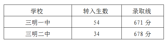 三、三明一中、二中未完成定向生、减少的学科特长生名额转入统招生融合切线情况