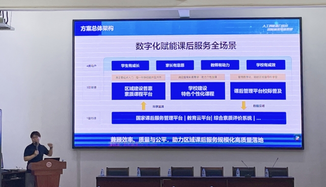 会上,科大讯飞课后服务业务部副总经理刘君分享课后服务提质增效方案。她为与会人员介绍了科大讯飞课后服务课程覆盖6大领域、26个主题和31门素质课程,能有效助力学生德智体美劳五育能力提升,提升课后服务吸引力,以数字化助力区域普惠的心理健康和科学教育水平提升,赋能学校教师通过AI双师授课或自主课件授课形式轻松备授课,助力教师轻松便捷驾驭课后服务课程。