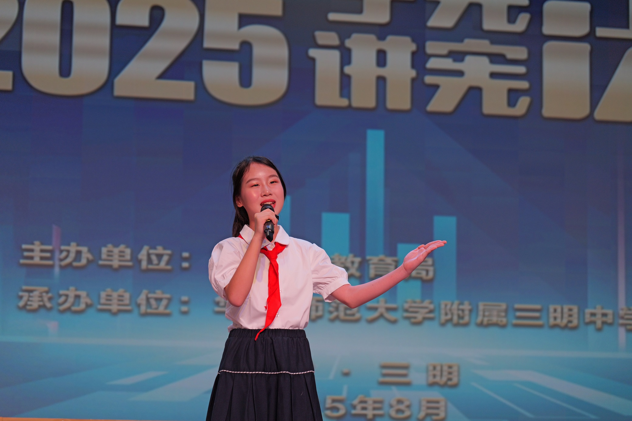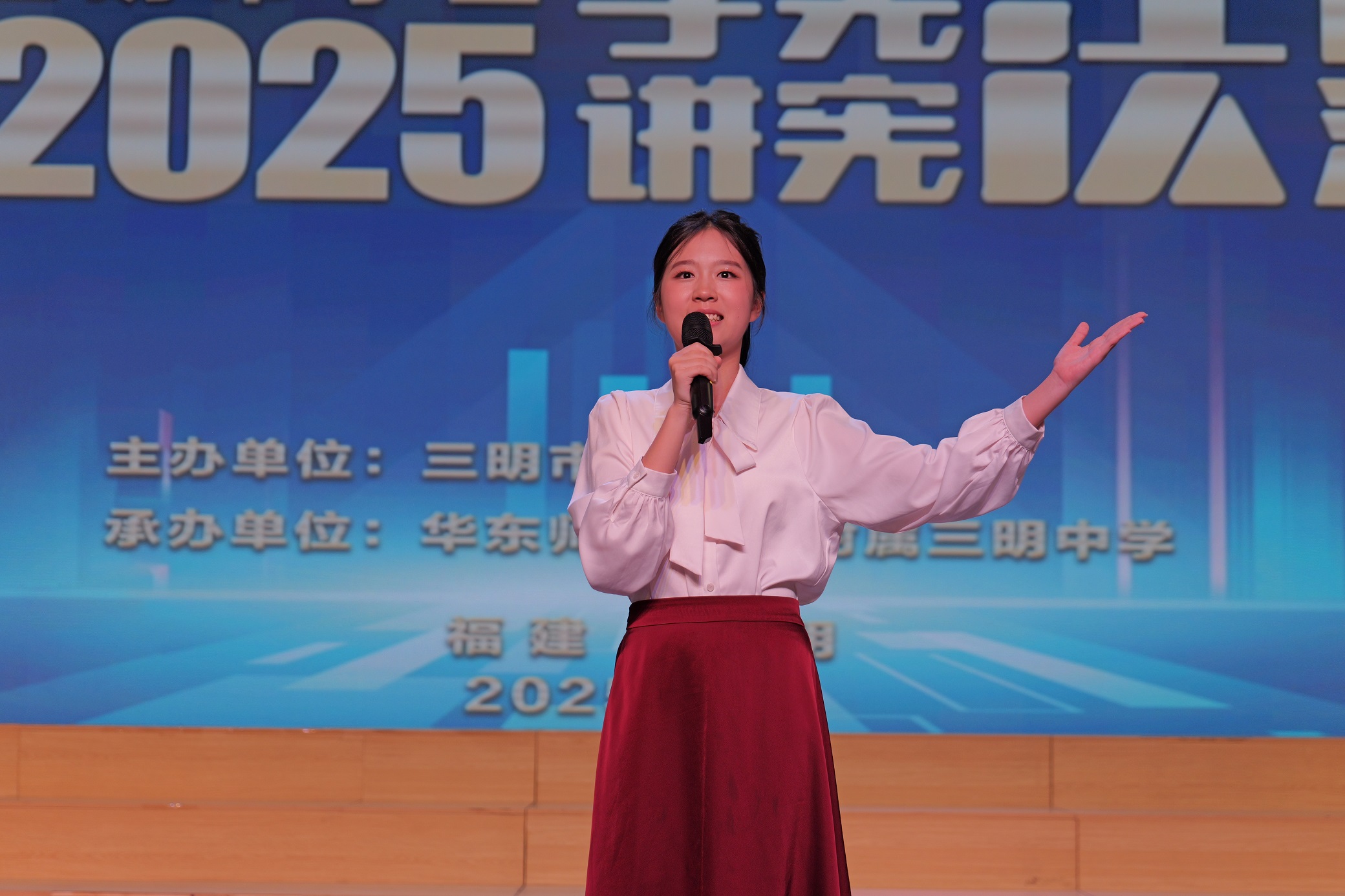 8月15日,2025年三明市学生“学宪法 讲宪法”遴选活动在华东师范大学附属三明中学举行。本次遴选活动分为演讲比赛、素养竞赛,共有来自各县(市、区)、市直属学校的90名选手参赛。市教育局党组成员、副局长郑丽观看比赛并为获奖选手颁奖。