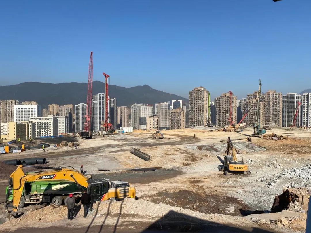 冬日寒风飒飒吹,连日来,在梅列区的徐碧村本点和甲头工地上,近百辆工程机械紧张作业,挖掘机、旋挖机的作业声此起彼伏、重型卡车来回穿梭,数十名工人正紧张作业,加工、绑扎、焊接钢筋,搭建桩基,现场一片热火朝天的施工景象。