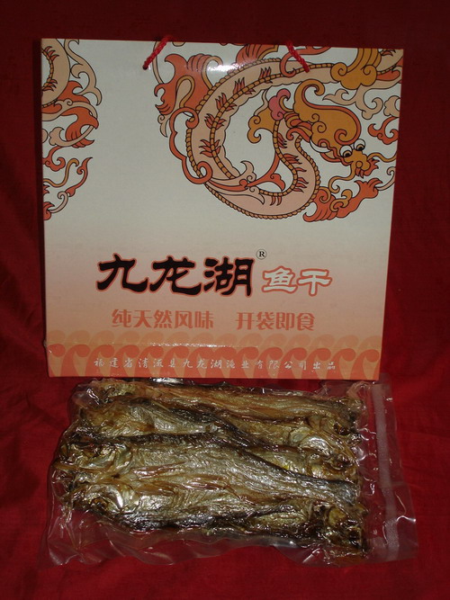 九龙湖位于清流县沙芜乡,该乡拥有水域面积2.2万亩,年产淡水鱼5000吨。九龙湖鲜鱼干选用九龙湖天然淡水鲜鱼为原料,经科学配方、传统工艺精制而成,营养丰富,味道鲜美,经高科技杀菌包装,严格保证食品卫生安全,可开袋即食,是居家、旅游、馈赠亲友之佳品,对商家而言,该产品具有广阔的市场前景。
