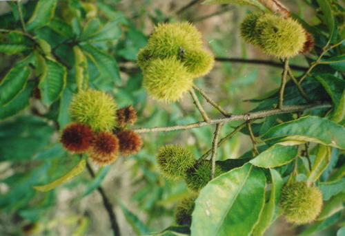 锥栗俗称榛子、木本粮食,大本粮油经济林,系壳斗科栗属植物。坚果营养价值丰富,果肉含淀粉51.88%,蛋白质7.63%、脂肪7.17%、水溶性糖13.58%、含有人体所需的氨基酸、多种维生素、无机盐等营养物质,其中维生素C含量达30.2--40.8毫克/100克,属绿色保健食品。肉质较板栗细嫩甘美,适宜生食、炒食、煮食或加工成蜜饯、栗粉、栗糕和罐头。锥栗抗病虫害,果期限长,坚果外有蓬包保护,不受农药污染,生长在海拔400米以上的高山上,是天然的绿色食品。