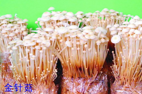 金针菇学名毛柄金钱菌,俗称钩菌、朴菇、冬菇等。金针菇不含叶绿素,不具有光合作用,不能制造碳水化合物,完全可以在黑暗环境中生长,必须从培养基中吸收现成的有机物质,如碳水化合物、蛋白质和脂肪的降解物,为腐生营养型,是一种异养生物,属担子菌类。金针菇是一种木材腐生菌,易生长在柳、榆、白杨树等阔叶树的枯树干及树桩上。金针菇是秋冬与早春栽培的食用菌,以其菌盖滑嫩、柄脆、营养丰富、味美适口而著称于世。据测定,金针菇氨基酸的含量非常丰富,高于一般菇类,尤其是赖氨酸的含量特别高,赖氨酸具有促进儿童智力发育的功能。金针菇干品中含蛋白质8.87%,碳水化合物60.2%,粗纤维达7.4%,经常食用可防治溃疡病。最近研究又表明,金针菇内所含的一种物质具有很好的抗癌作用。金针菇既是一种美味食品,又是较好的保健食品,金针菇的国内外市场日益广阔。