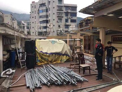 该违建地处三元区育才路无名小子饭店楼顶,违建面积390平方米。