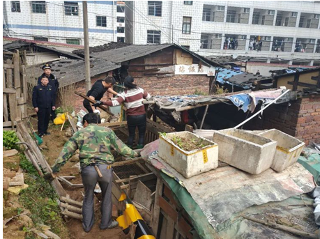该违建地处大田县均溪镇六中宿舍楼背后,拆除面积400平方米。