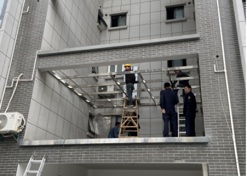 该违建地处尤溪县城关镇毓秀花园小区2幢203室南侧露台的一层钢结构建筑物,违建面积约30㎡。